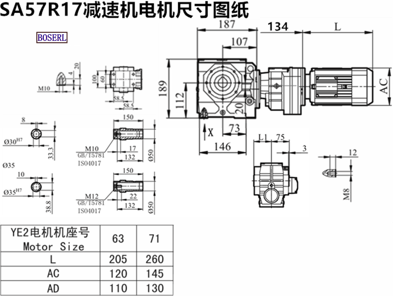 | SA57RF17YEJB63M4BMG | 蝸輪蝸桿減速機 | SA57R17DT71D4BMG | SA57RF17D71M4BMG |