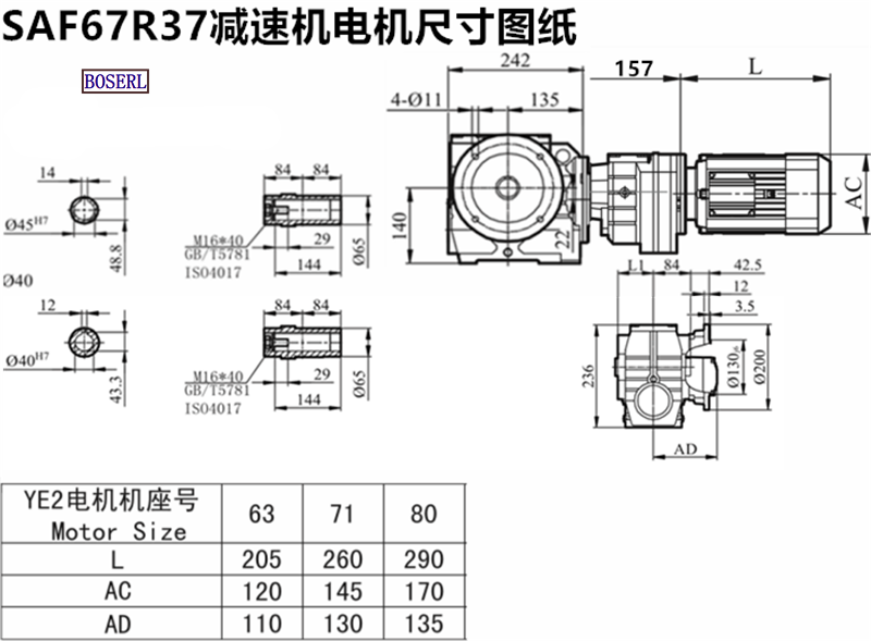 | 伺服電機渦輪渦桿減速機 | SAF67R37Y63M4 | SAF67R37DRS71M4 | SAF67RF37Y0.37KW |